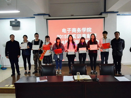 丁文林书记宣读表彰决定和获奖学生名单。与会领导为李娜等19名“优秀实习生”颁发证书。2015-2016第二学期,电子商务学院B1471班和B1472班共计91名学生分别在苏州、杭州、庐山、三亚等地的实习基地进行了《大学生创业能力与素质拓展实训》。实训过程中同学们都能认真实践理论知识,积极按照企业要求完成实训内容。其中19名同学在实训过程中表现良好、成绩优秀,学院决定授予“优秀实习生”荣誉称号。