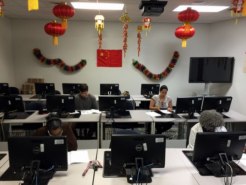 美国当地时间4月16日,萨凡纳州立大学孔子学院举办本年度第一场HSK考试。