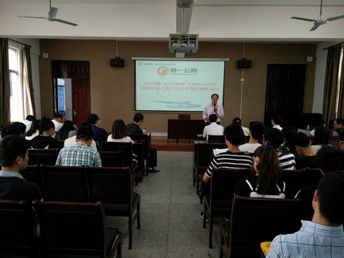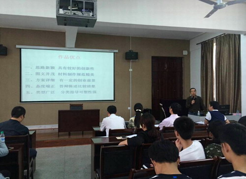 副院长曹小华就“得一云购杯”互联网+大学生创新创业竞赛进行了全面总结,并就作品进一步修改和完善提出建议和要求。曹小华如实反馈了七名专家专家对竞赛作品的评价意见,专家认为本次竞赛大部分作品具有思路新颖、类型广泛、方案详细、材料精美等优点,但部分作品也存在组织管理机构不合理、服务对象不清晰、市场调研不充分等不足。同时结合专家意见和校赛评审要点,对作品修改提出“三性”建议,即注意作品的创新性、创业性和操作性。