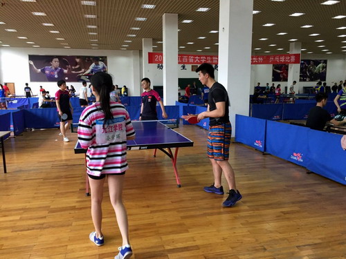 5月19至22日,2016年江西省大学生乒乓球比赛暨普通高校“校长杯”乒乓球比赛在南昌航空大学举行,我校乒乓健儿经过奋勇拼搏,获得男子单打第三名、女子双打第五名、男子团体第五名的较好成绩。