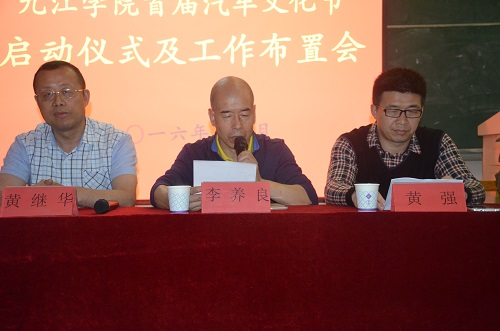 启动仪式上,李养良副院长首先宣布了首届汽车文化节校内部分组织机构名单,并介绍了本次活动分为五大模块:汽车结构知识和汽车文化模块,机材学院和汽车教研室成果展示模块,汽车教研室教师专利展示和汽车保养体验模块,汽车车展模块,以及汽车招聘模块。