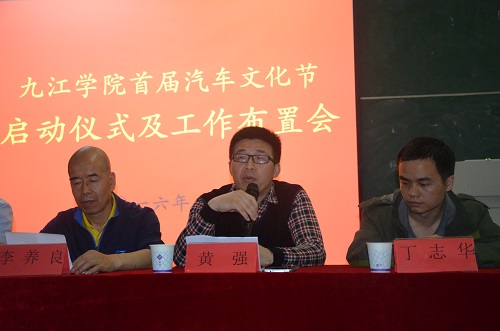 黄强副院长强调希望同学们能够积极参与到本节汽车科技文化展活动中来,通过本次活动拓展更广阔的实践平台,向全市人民展示机材学院和汽车学科的科研和教学成果。
