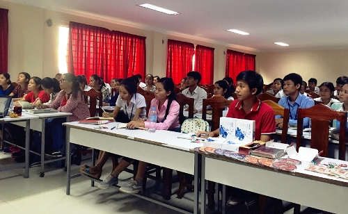 6月8日,柬埔寨王家研究院孔子学院马德望国际大学汉语中心举办端午节文化讲座。公派教师蔡钦主讲,汉语中心60余名学生参加了活动。