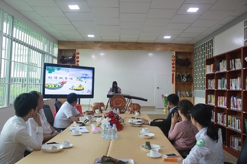 中方院长帅式毅对代表团的到来表示欢迎。他从屈原投江的故事讲起,解说了端午节的由来及端午节的相关习俗。他指出端午节,充盈着先人对自然的尊崇和对时令的敬畏,但端午节不是“棕子节”,更重要的是传递中国的文人气节及深厚的爱国情怀。他指出,中国的传统节日丰富,且风俗习惯多样,正是中国文化多元的体现。