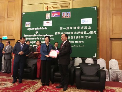 6月25日,由柬埔寨旅游部和中国国旅集团共同主办的“第一届柬埔寨旅游业拓展中国客源市场暨致力服务中国游客战略研讨会”,在首都金边金界酒店召开,旨在吸引更多中国游客来柬埔寨旅游。柬埔寨旅游部部长唐坤(THONG Khon)、中国驻柬埔寨大使布建国与会并致辞。上千名柬中两国旅游业者、旅游专家及各界商人等相关政府部门官员,在研讨会上相互交流意见和分享经验。
