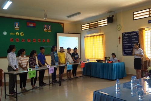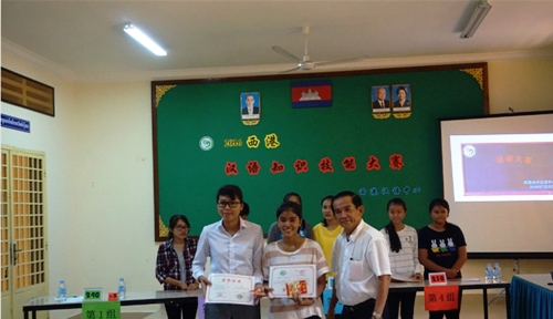 7月3日,柬埔寨王家研究院孔子学院西哈努克省高级中学汉语中心成功举办“汉语知识技能大赛”。西港省教育厅高莱(Kov Lay)厅长、西港高中高吴提(Khov Vuthy)校长、西港省教育局林江(Lim Kheang)老师、中国国家侨办外派教师西港港华学校吕俊桥校长、赴柬志愿者教师西南地区负责人蔡小敏老师、西港经济特区红豆集团李超主任、西港鄂尔多斯鸿骏电力有限公司吴成雷经理、汉语中心柬方负责人王浩(Nivorth)老师以及汉语中心全体教师出席了此次活动。此外,活动还邀请了选手家长和汉语中心师生100余人参加了此次活动。活动由汉语中心赵小雪老师主持。