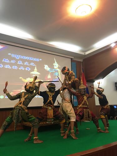 谢莫尼勒阁下主讲的中柬文化沙龙之“魅力柬文化传统面具舞”掀起了活动的高潮。柬埔寨文化艺术部文化艺术学校的演员们表演的传统面具舞伴着柬埔寨的传统打击乐器的演奏,通过演员们富有张力的舞蹈动作,为大家呈现了史诗故事《罗摩衍那》(Ream Ker)的视觉盛宴。