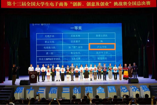 7月31日—8月2日,第十三届全国大学生电子商务“创新、创意及创业”挑战赛(以下简称“三创赛”)全国总决赛在中国矿业大学(江苏徐州)举行。我校管理学院王晴、陈君两位指导老师指导,电子商务专业A2021班李诗艺、詹郡怡、陆杨、谢欣及文学院编导专业A2031班周志俊同学组成的“庐山可宿”团队经过激烈比拼,将所学专业理论应用到实践,充分运用创新思维,发掘新路径,拓展新思路,凭借扎实的创业基底和独特的创意,最终荣获全国一等奖及最佳创业奖,王晴老师、陈君老师也被授予“优秀指导老师”称号,实现了我校在该项赛事上的新突破。