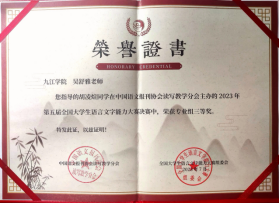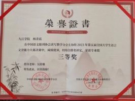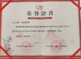 近日,由中国语文报刊协会读写教学分会举办的第五届全国大学生语言文字能力大赛决赛成绩揭晓,我校文学院汉教A2151班由吴舒雅老师指导的6位同学中有4位晋级决赛,郑欣宇同学获得大赛决赛专业组一等奖,杨青霞、胡凌煊同学获决赛专业组三等奖,黄燕同学获决赛专业组优秀奖。