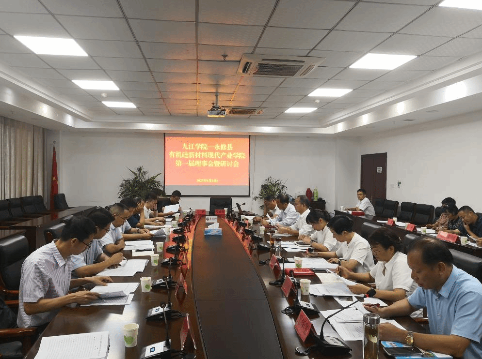 9月14日上午,九江学院-永修县有机硅新材料产业学院第一届理事会暨研讨会在永修县人民政府大楼主楼1119会议室召开。永修县委常委、组织部长梁莉,副县长张霞,县政协副主席郭三仁等,我校化学化工学院、有机硅中心负责人和江西海多硅材董事长廖洪流等参加会议。