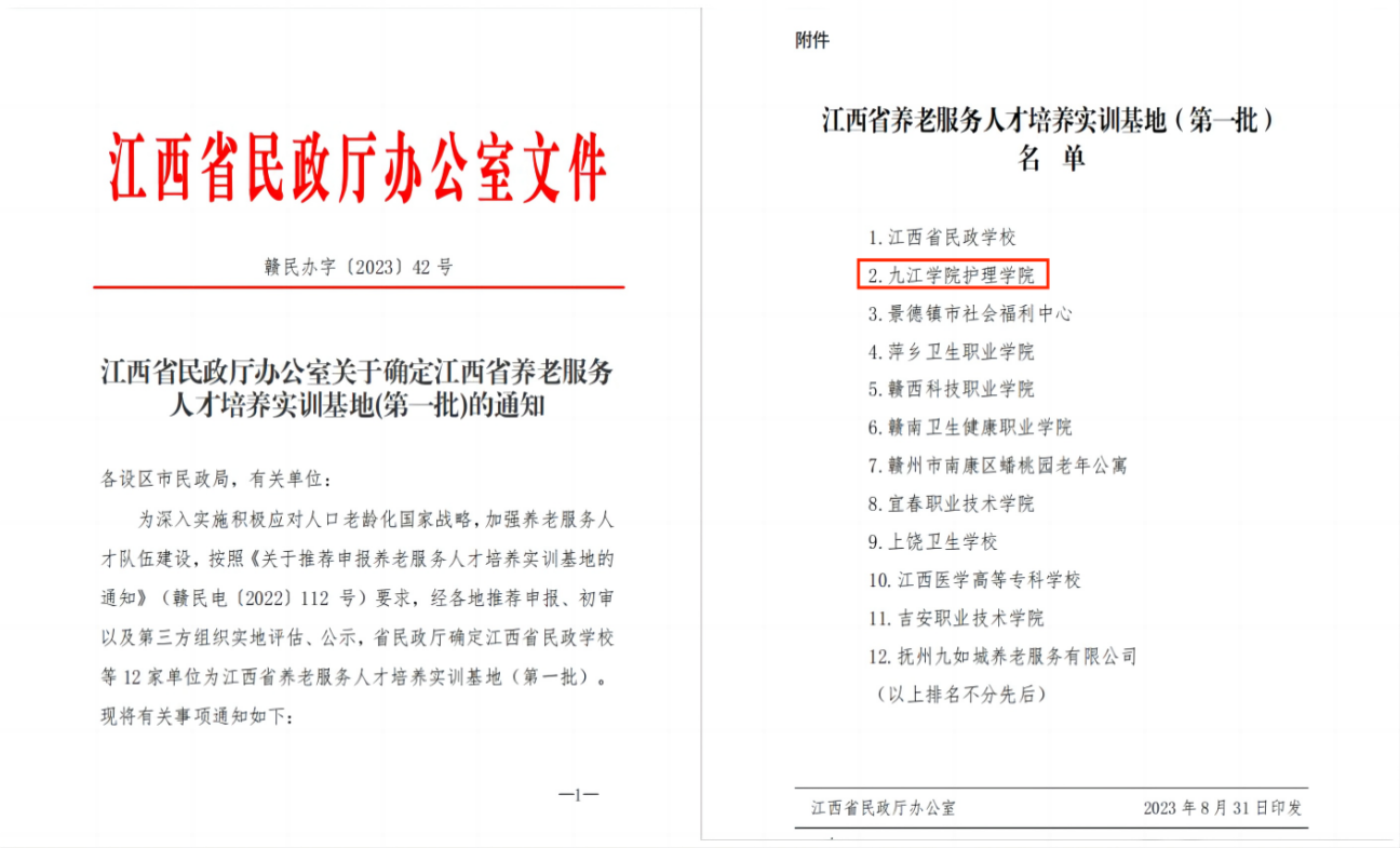 近日,我校护理学院被江西省民政厅确定为江西省养老服务人才培养实训基地。这是护理学院第二个省级教学平台。