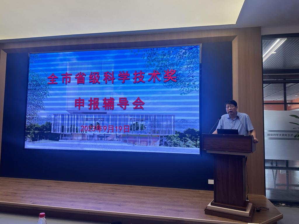 9月19日,受九江市科技局委托,我校在大学科技园一楼报告厅组织召开全市省级科学技术奖申报辅导会。会议邀请原省科技厅一级巡视员赵金城做主旨报告,副校长严平、市科技局副局长黄雄及五位特邀辅导专家出席会议,中船九江精达科技股份有限公司等34家本年度报奖单位的提名负责人、公司代表及我校理工科学院教师代表参加本次会议。