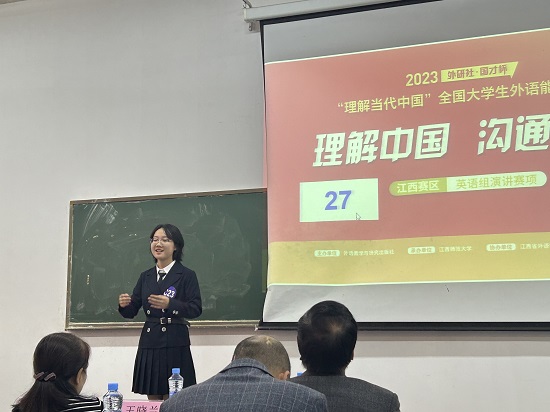 近日,在2023年“外研社·国才杯”“理解当代中国”全国大学生外语能力大赛中,我校学子奋勇争先、斩获佳绩,共获金奖3项、银奖4项、铜奖6项。今年该项赛事进行了升级,分为英语组(演讲、阅读、写作、口译、笔译)和多语种组两大赛项展开,共有来自全省高校539名选手参加江西赛区决赛。我校派出的13名选手在决赛中全部载誉而归,其中获得金奖的三位选手(外国语学院孔启惠、刘茵、冷先丹)将代表江西赛区征战全国决赛。这是我校在该赛事中取得的历史最好成绩。