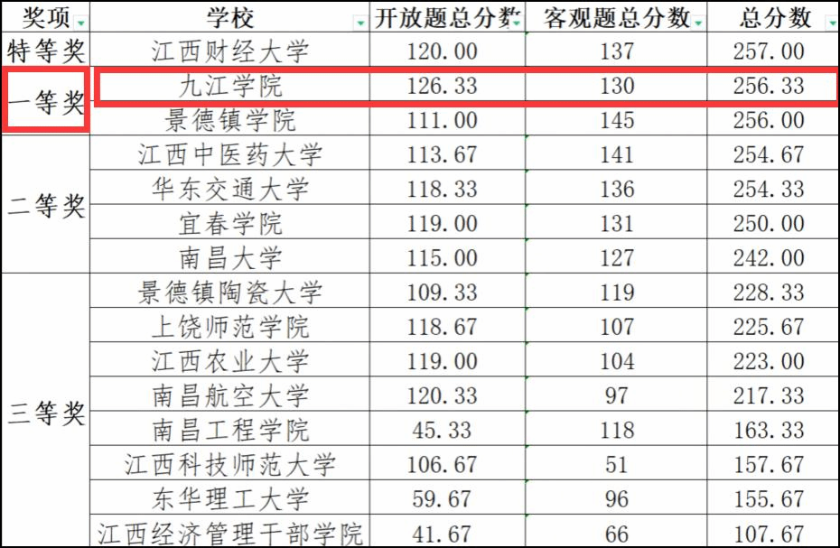 本次竞赛由江西高校图书馆联盟主办、江西农业大学图书馆承办、同方知网(北京)技术有限公司江西分公司协办。大赛分为初赛、决赛两个阶段。经过初赛选拔,各参赛高校排名前列的选手组成团队代表学校参与决赛。据统计,我校共有1127名读者参与初赛答题,江哲立、丁文韬、黄嘉译三位同学脱颖而出,代表九江学院参与决赛。决赛设开放题和客观题,我校三名参赛选手顺利完成答题任务,15位评审专家进行评分。最终,九江学院代表队以总分256.33的成绩获得集体一等奖。