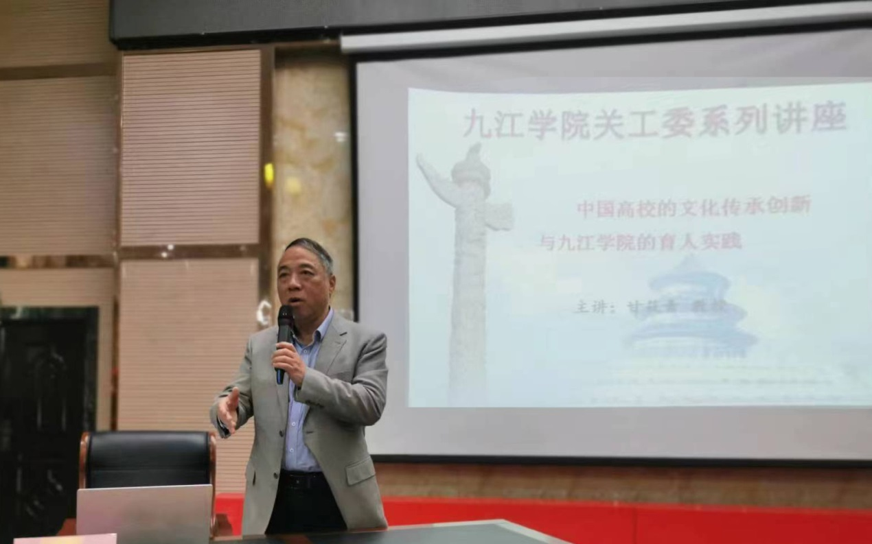 12月7日下午,校关工委邀请原校长甘筱青教授在香远楼报告厅为师生作《中国高校的文化传承创新与九江学院的育人实践》专题讲座。校关工委委员、青年教师代表、学生代表共300余人聆听了报告。讲座由校关工委执行主任吴桃娥主持。