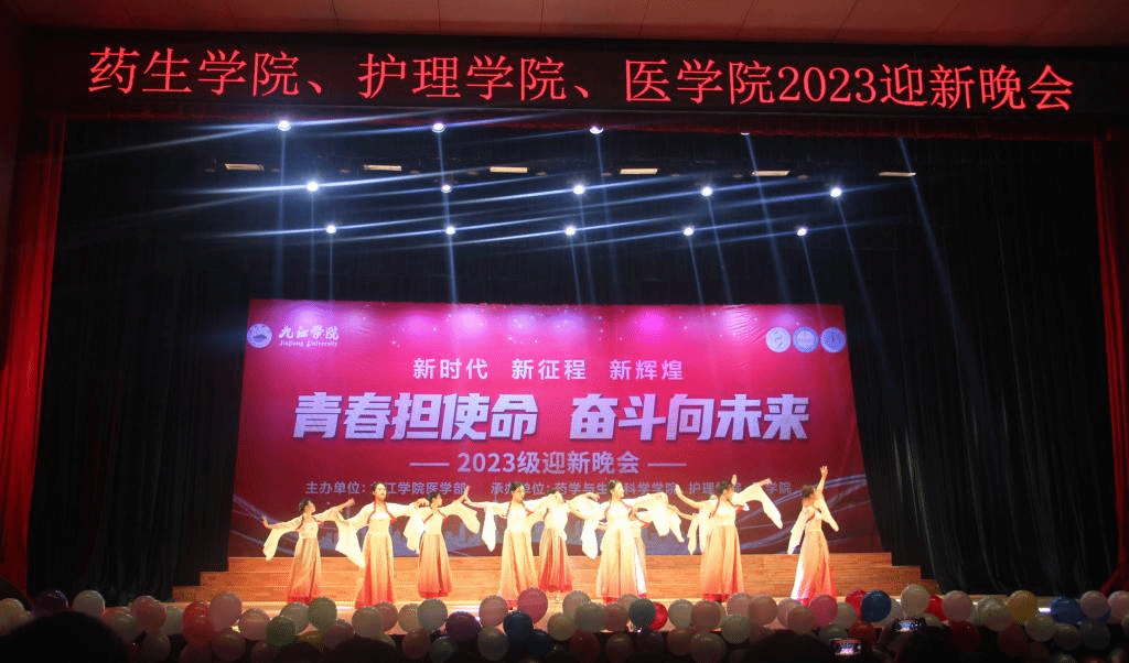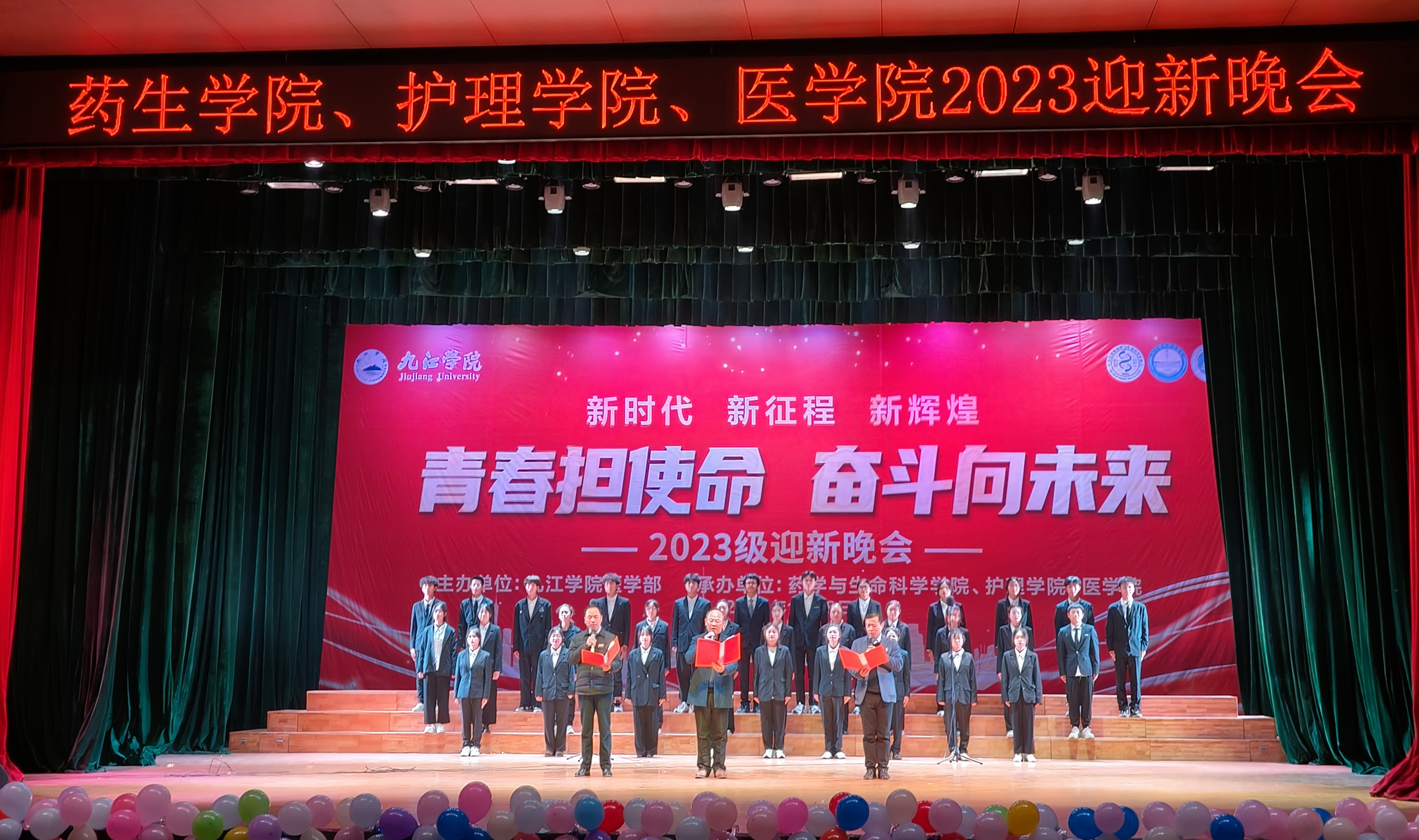 12月8日晚,由医学部主办,药学与生命科学学院、护理学院、医学院联合承办的“青春担使命,奋斗向未来” 2023级迎新晚会在九江学院大礼堂举行。副校长王殿元为晚会致辞。医学部、附属医院、口腔医院、药生学院、护理学院、医学院负责人及教师代表与学生共赏这场晚会。