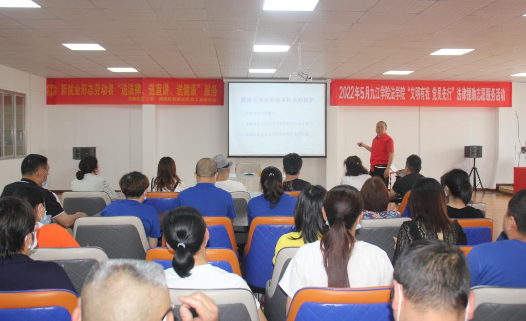 师生公益活动凸显大担当,法律援助广获好评。为了更好地破解社会治理难点、堵点,学院多次组织师生深入街道、社区,探索具有中国特色的社会治理新路径,学院与九江市内外司法机关、律所等19家单位签约建立了实践教学基地、司法研究基地、法律援助工作站,全方位推进法学理论研究与法律实践的有机结合,为九江市各类企业提供人才和智力支持,解决企业发展中的关键法律问题,实现教研学一体化,共同进步良性发展的新局面。为相关企业提供社会稳定风险评估、风险预警研判服务,完成横向课题11项。坚持关注民众所盼,解决民生所需,建立“工友法律援助服务站”,为欠薪和工伤事故职工等特殊群体提供法律援助,用专业知识给他们送去温暖,保障他们的合法权益。