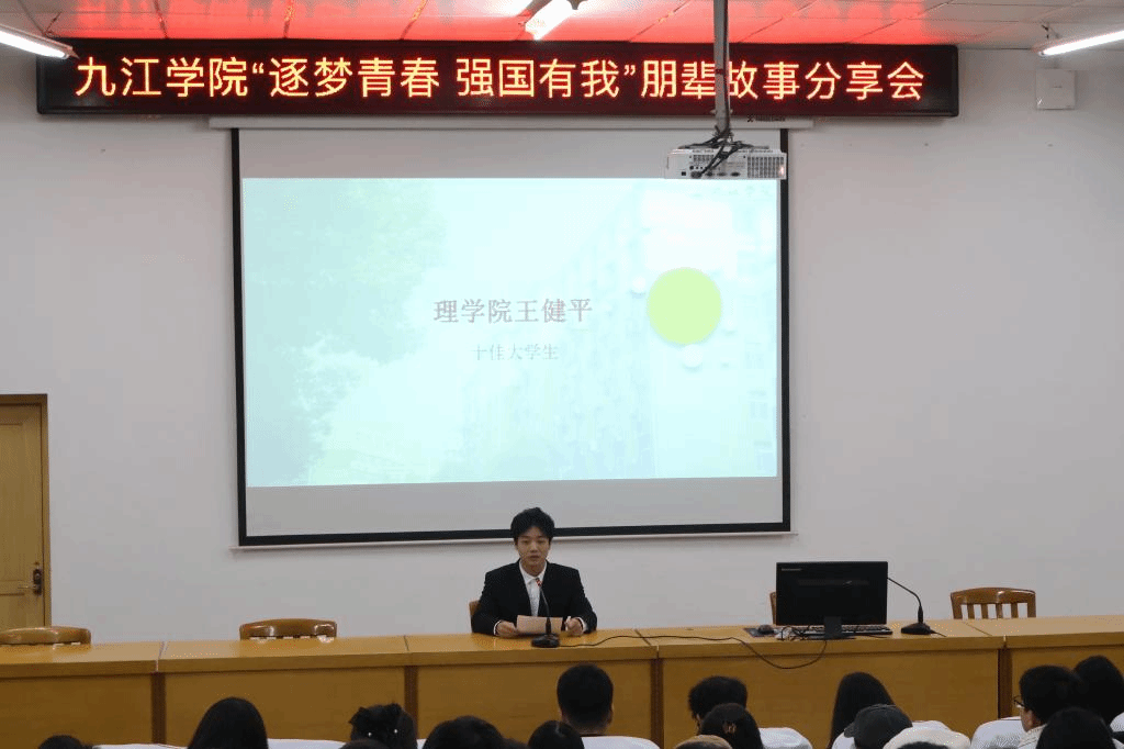 为充分发挥优秀大学生典型示范和榜样教育作用,积极搭建学生交流互动平台,12月22日晚,校团委在图书馆报告厅举办“逐梦青春 强国有我”朋辈故事分享会,荣获“十佳大学生”“勤奋学习标兵”称号的同学们通过线上直播、线下面对面交流的方式,与我校1500余名大学生分享大学逐梦之旅,在思想引领、科研学习、社会实践、志愿服务、职业规划等方面为同学们指点迷津。