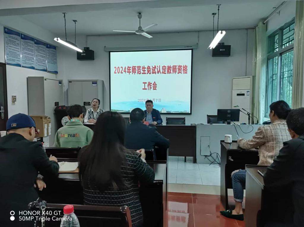 4月7日上午,学校在二号行政楼四楼会议室召开2024届本科师范生免试认定中小学教师资格教育教学能力考核专项工作会,副校长李松志出席会议,教务处相关负责人、相关学院分管教学副院长和教务科科长等参加会议。