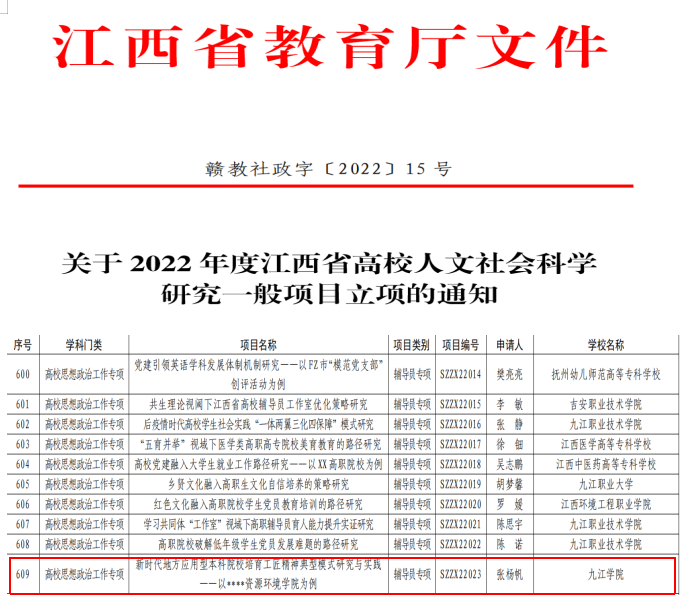 编者按:九江学院第一次党代会以来,学校党委坚持以习近平新时代中国特色社会主义思想为指导,深入贯彻落实习近平总书记关于高等教育的重要论述,团结带领全校师生员工,积极抢抓机遇,改革创新,担当作为,学校办学水平和综合实力迈上新台阶。为迎接学校第二次党代会胜利召开,校园网特推出“喜迎党代会·发展巡礼”专栏,持续刊发各二级学院、机关部门和科研机构经验材料,全面回顾总结第一次党代会以来学校各方面取得的发展成果,激励全校师生员工担当实干、锐意进取,以优异成绩向学校第二次党代会献礼!