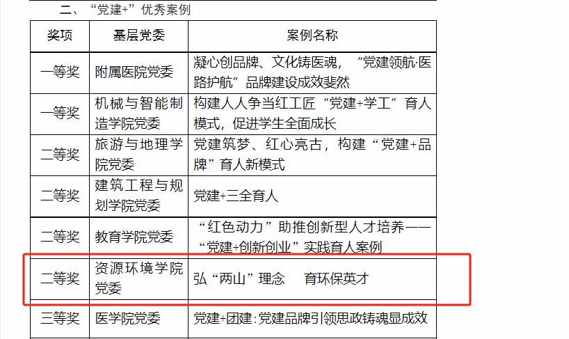 学院党委结合自身办学特色,以“绿水青山就是金山银山”理念为主题,以基层党组织建设为主线,以“弘‘两山’理念、育环保英才”为目标,开展三全育人的探索实践,创建“两山”党建品牌。精心组织5期“两山”思政讲堂;组织开展“党建引领践行‘两山’理念,助力武宁乡村振兴”等‘两山’党建品牌主题党日活动。获批省高校人文高校思想政治工作专项项目1项,获批校党建课题1项;学院申报的“弘‘两山’理念 育环保英才”“党建+”优秀案例获校“党建+”优秀案例二等奖,并获批校教师党支部书记“双带头人”工作室创建单位。在今后的工作形成了党建工作“1234”工作思路即围绕一条主线、筑牢两个理念、着力三个抓手、建设四项工程。