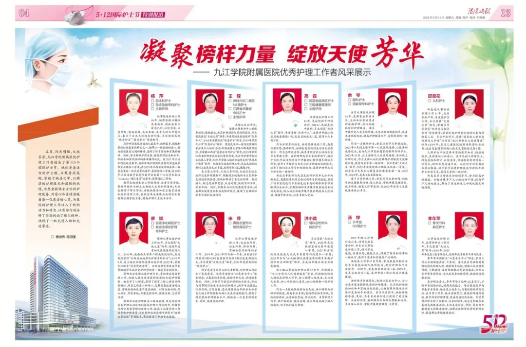 五月,阳光明媚,大地芬芳,九江学院附属医院护理工作者迎来了第113个国际护士节。她们身着洁白的护士服,头戴着燕尾帽,穿梭于病房之中,以精湛的护理技术和满腔的热情,为患者提供全方位的护理服务,用爱心和真情温暖着每一位患者的心灵,为医院的护理工作注入了新的活力和动力,以实际行动诠释了崇高的南丁格尔精神,涌现了一批先进人物和先进事迹。