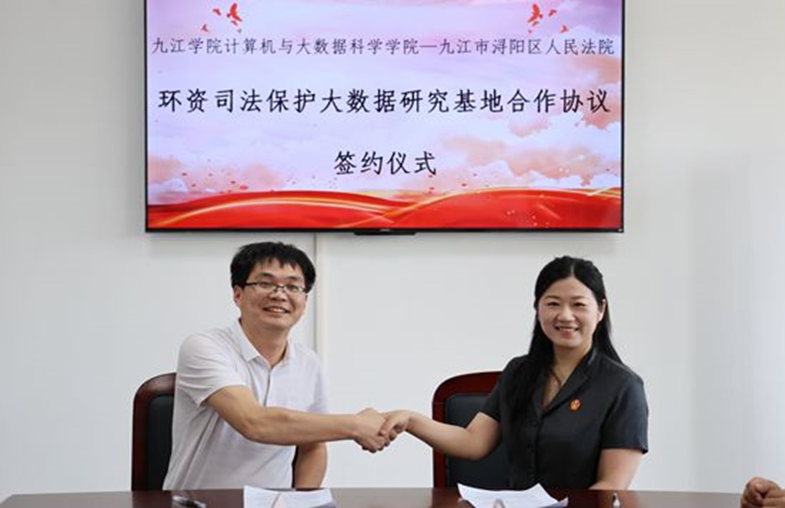 5月9日,我校计算机与大数据科学学院与九江浔阳法院在东郊法庭正式签署《环资司法保护大数据研究基地合作协议》,我校将在东郊法庭设立环资司法保护大数据研究基地。浔阳法院党组书记、院长刘克曙、我校计算机与大数据科学学院负责人等出席签约仪式。
