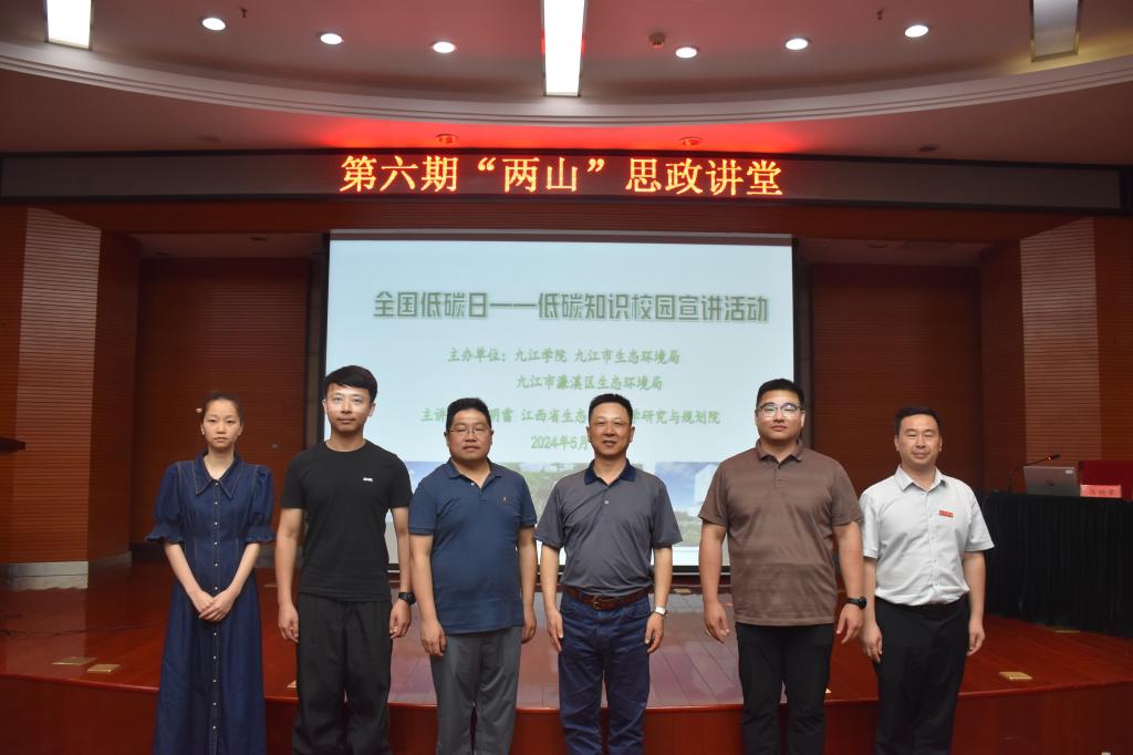 5月17日,由九江学院、九江市生态环境局、九江市濂溪区生态环境局共同主办的低碳知识校园宣讲暨资源环境学院第六期“两山”思政讲堂活动在九江学院逸夫图书馆报告厅举行,活动邀请了江西省生态环境科学研究与规划院的专家冯明雷授课。资环学院负责人、九江市生态环境局、九江市濂溪区生态环境局、资环学院师生代表共120余人参加此次活动。