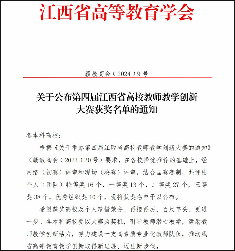 喜讯!我校在第四届江西省高校教师教学创新大赛中再创佳绩