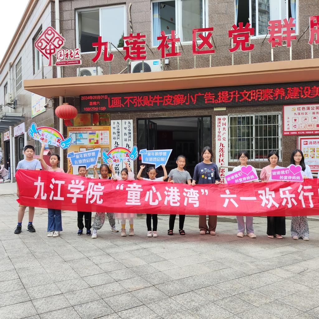 在“六一”国际儿童节到来之际,九江学院团委积极组织师生前往濂溪区九莲社区的“童心港湾”项目点,开展了一场别开生面的“童心港湾 六一欢乐行”活动。本次活动以“欢乐、陪伴、成长”为主题,旨在通过丰富多彩的活动内容,让社区的孩子们感受到节日的快乐和温暖,促进他们更好的健康成长。