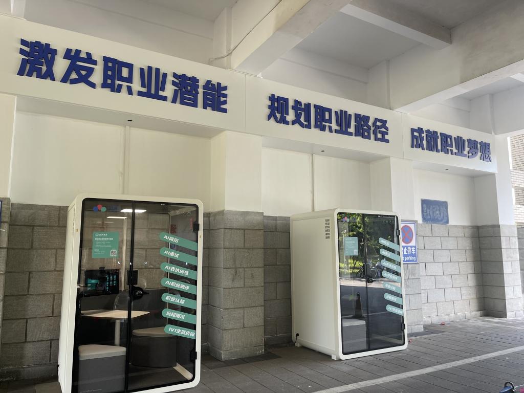 智慧面试亭功能简介:在校生可通过“九院就业”微信公众号进行预约使用。智慧面试亭提供“AI简历优化、AI面试优化、AI表达训练、AI职业测评、职业认知、远程面试”六大功能模块,预约成功后可沉浸式体验,畅享赋有针对性、个性化、高效率地线上指导服务。