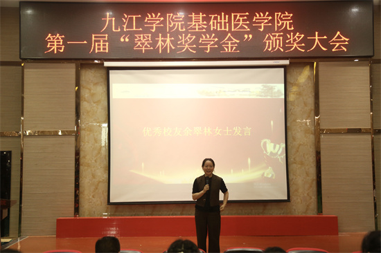我校优秀校友、“翠林奖学金”创始人余翠林女士,副校长雷志强亲临现场,与基础医学院、九江学院校友联络与服务中心负责人,学院全体辅导员和各班学生代表共300余人共同参加此次颁奖大会。