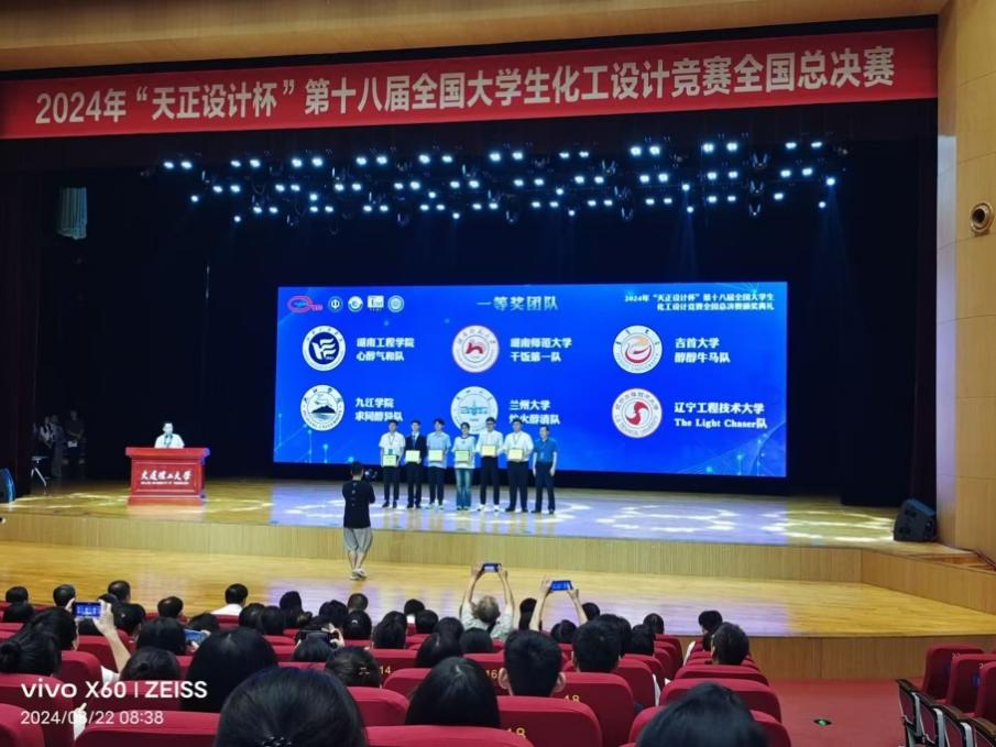 近日,由中国化工学会、中国化工教育协会主办,大连理工大学承办的2024年“天正设计杯” 第十八届全国大学生化工设计竞赛全国总决赛在大连举行,由我校化学化工学院吴斌、袁妍妍、费剑波、刘恩、张志超组成的“求同醇异”队设计作品——“扬子石化——巴斯夫有限责任公司4万吨/年1,3-丙二醇生产项目”获得全国一等奖。这是我校连续三年获得这一殊荣。