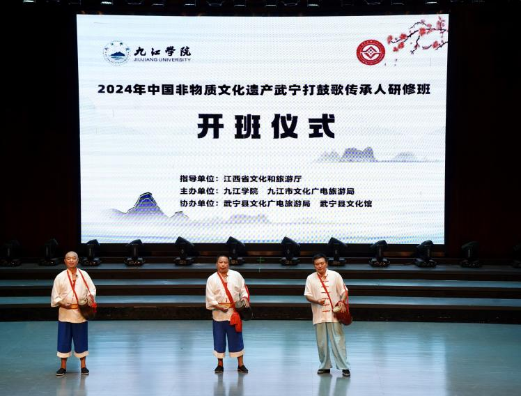 省文旅厅非遗处处长邓明华介绍了国家实施非遗传承人群专项教育活动的计划和意义,并对九江学院近年来在非遗传承保护工作上取得的显著成绩表示肯定。同时,邓明华对本次武宁打鼓歌研修项目的老师和学员们提出了殷切期望,希望九江学院此次研修班要充分发挥在赣北文化和红色文化传承、研究领域的重要作用,进一步完善武宁打鼓歌的人才梯队建设。