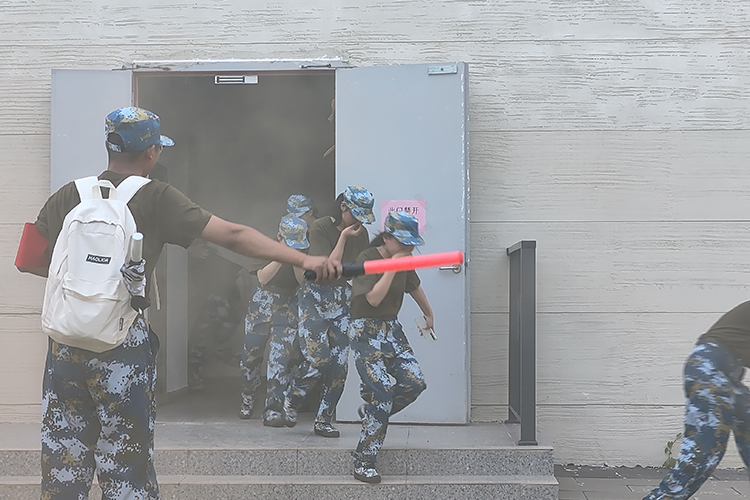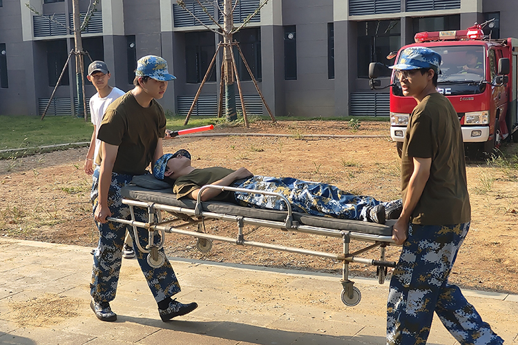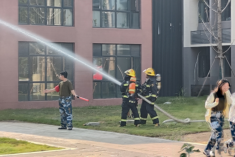 演练以紫薇园1-1号学生公寓出现火情,浓烟弥漫整栋楼为假设,随着警报响起,应急疏散演练活动拉开帷幕。同学们在值守老师和疏散人员的指引下,按照“捂住口鼻、低姿弯腰、迅速撤离”的逃生要领,快速有序地撤离到安全区域。消防官兵同步展开救援,架起高压水枪,对准“着火”部位进行喷水灭火,发现“伤员”后组织人员把模拟昏迷的学生抬入校医院救护车内,引导人员疏散到集合地点并清点人数,演练结束后对师生进行消防安全知识的培训及灭火设备操作演示。