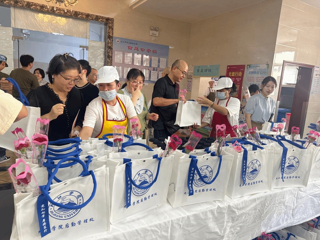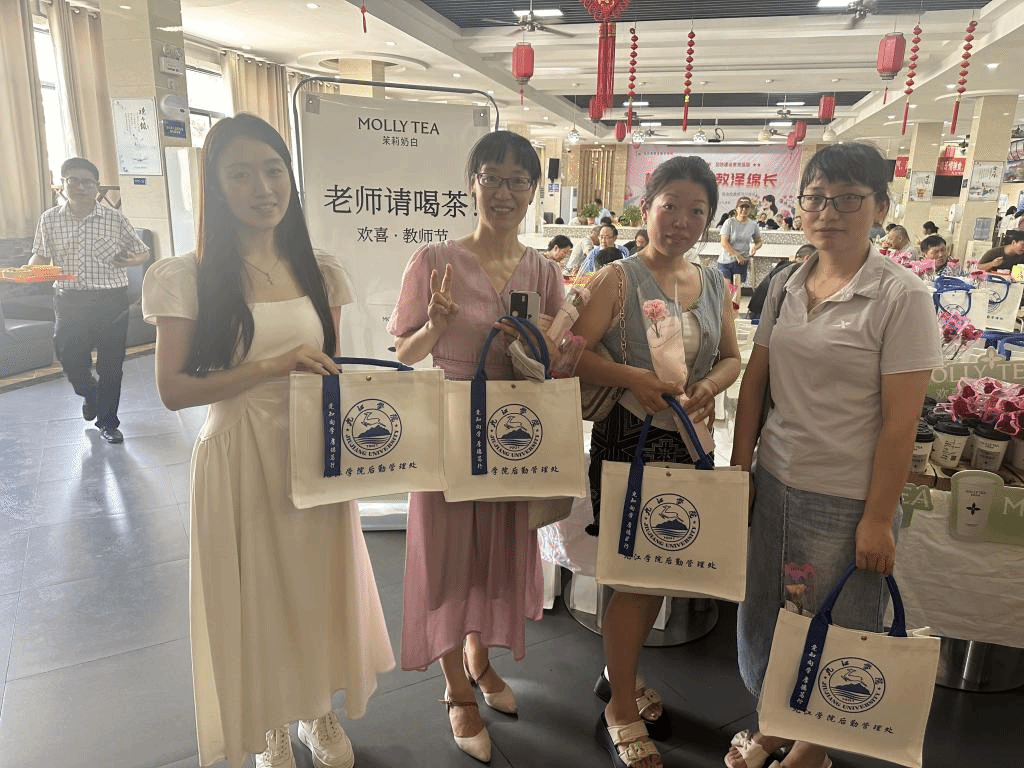 活动正式开始时,活动现场弥漫着温馨与感动的气息。后勤管理处工作人员手捧礼物,面带微笑,逐一为老师们送上这份特别的节日惊喜——定制的印有学校LOGO的手提袋和鲜艳的鲜花。这些手提袋不仅实用,更是学校文化的一种体现,让老师们在日常生活中也能感受到学校的关怀,而那一束束鲜花,更是代表着对老师们辛勤付出的敬意和祝福。