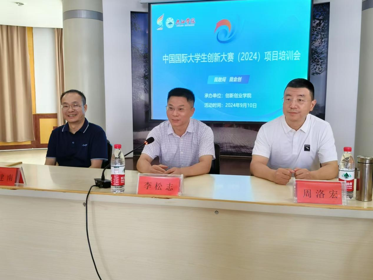 9月10日上午,我校在行政楼一号会议室举行中国国际大学生创新大赛(2024)项目辅导会。中国投资人十强、“互联网+”大赛专家委员会委员及“冠军项目”导师周洛宏,高校创业投资委员会副主任、“互联网+”大赛专家谢建南应邀参加我校创新大赛指导工作,副校长李松志出席并讲话。机械与智能制造学院、文学院、旅游与地理学院负责人,创新创业学院全体人员及江西省大学生创新大赛获铜奖以上的项目团队参会。