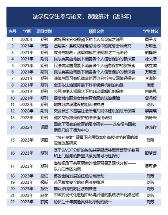 学院教师主持完成省教育厅课题7项,在高水平学术期刊上发表论文21篇,出版学术专著4部、教材1本;完成横向及纵向科研立项17项,经费67.5万元;与上海、九江、都昌、德安等地22所法院、检察院、知识产权局、律师事务所达成合作,建立学生实训实习基地。