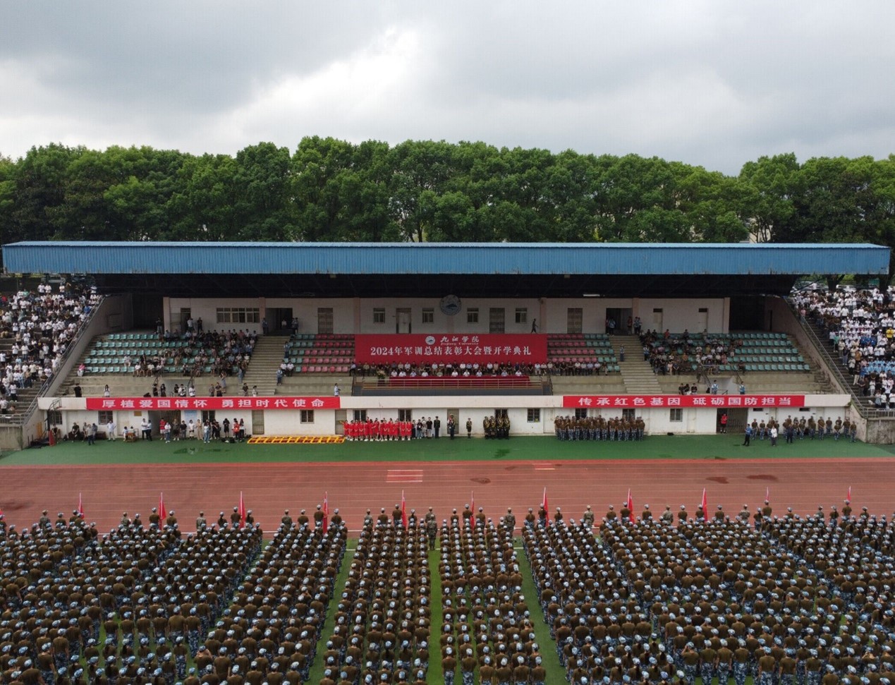 9月21日上午,九江学院2024级新生军训总结表彰大会暨开学典礼在丹枫园南区运动场落下帷幕,标志着8600余名大一新生圆满完成了为期14天的军训训练。