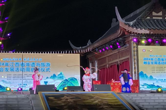 9月23日,“畅游如画江西 非遗点亮生活”2024年江西省非遗与旅游融合发展活动周启动仪式在鹰潭举行。本次活动由江西省文化和旅游厅、鹰潭市人民政府主办,江西省非遗研究保护中心、鹰潭市文化广电旅游局共同承办。我校艺术学院受邀参与鹰潭方特东方神话举办的“薪火相传—传承人研培成果展演展示活动”,2023年度中国非物质文化遗产传承人(星子西河戏)研修班优秀学员10余人参加成果展演。
