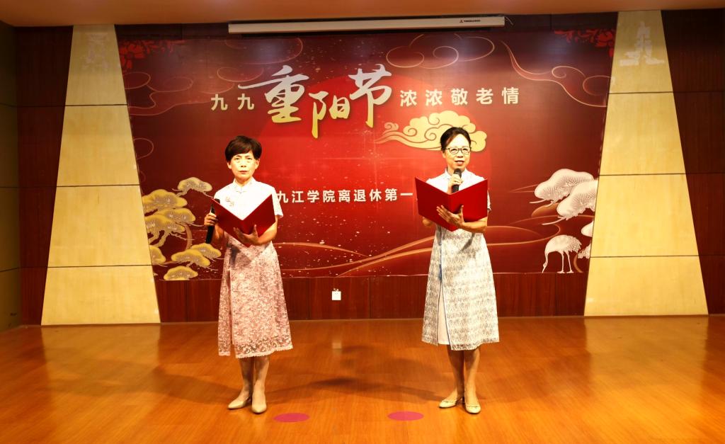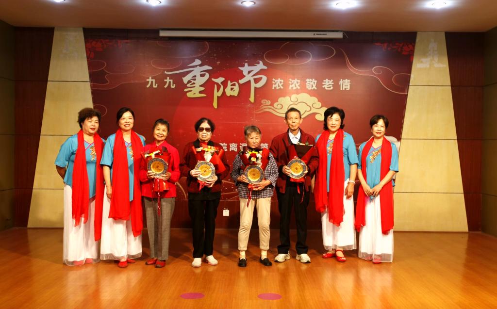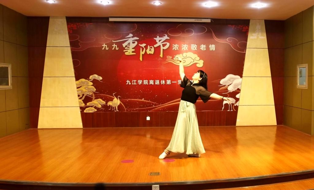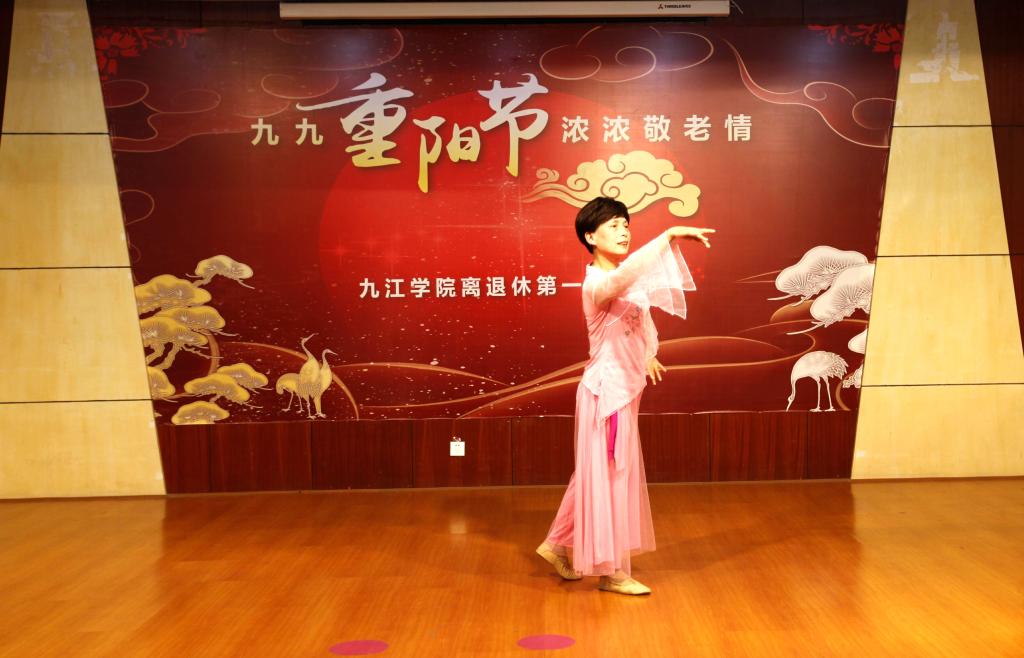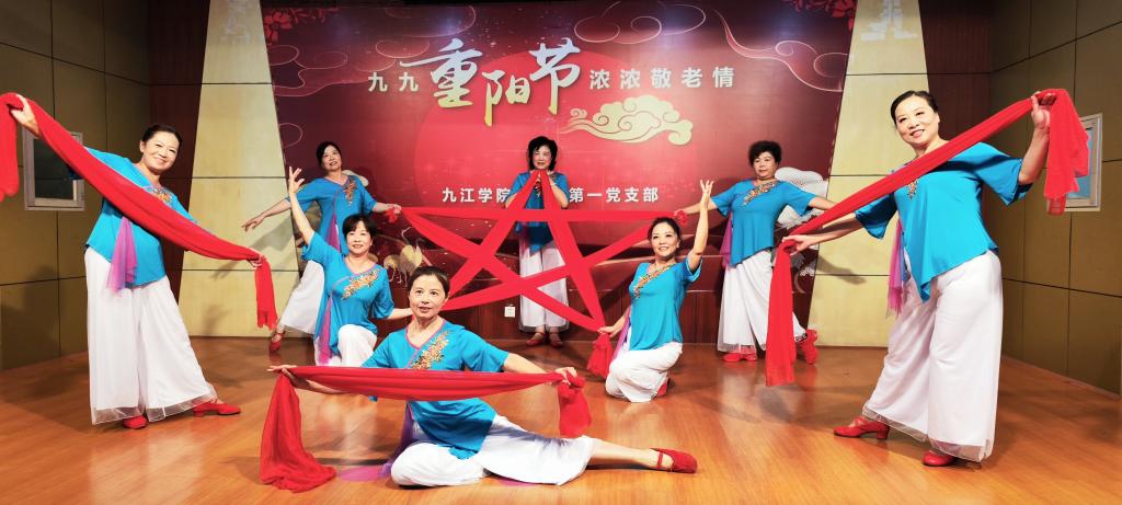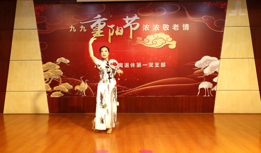 活动在邹忠华老师舞蹈表演《不如见一面》中拉开序幕。紧接着是黄硕红、刘建两位老师带来的诗朗诵表演《不忘初心》,万美兰老师的舞蹈表演《花好月圆》,袁林老师的歌曲表演《芦花》《历史的天空》,李炎生老师的诗朗诵表演《贺一支部重阳节活动》,赵璇老师的歌曲表演《珊瑚颂》《梨花颂》,刘建老师的舞蹈表演《相遇》,胡小铭老师的歌曲表演《有风无风皆自由》,深受喜爱和好评,获得了热烈的掌声。最后一个节目是吴桃娥、马军等老师表演的舞蹈《绣红旗》,她们一招一式、一针一线绣红旗的细腻动作,轻盈的舞姿和别致的造型,更是将活动现场气氛推向高潮。