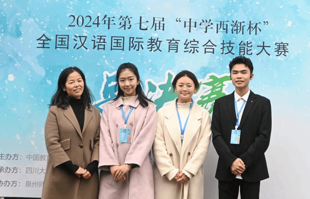 11月24日,第七届“中学西渐杯”全国汉语国际教育综合技能大赛总决赛在四川大学圆满落幕。我校文学院汉语国际教育专业的董竹悦、金迪儿、漆文康三位同学从223所高校的强劲对手中脱颖而出,以优异表现摘得全国二等奖,刷新了我校在该项赛事中的最好成绩。
