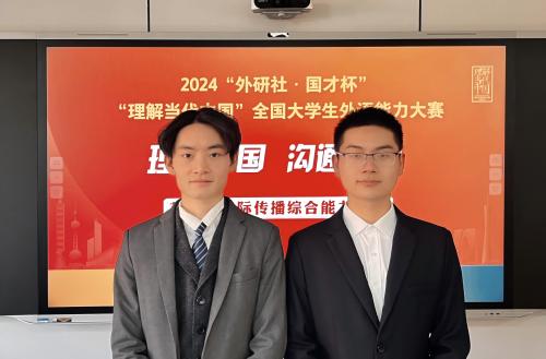 “外研社·国才杯”“理解当代中国”全国大学生外语能力大赛是英语专业的重要赛事,其中英语组综合能力赛项耗时两个多月,从校赛至省赛、直至国赛,层层选拔优秀选手。11月23日,陈浩、程鑫两位同学代表江西赛区征战“外研社•国才杯”国际传播综合能力赛项的第一轮国赛(综合能力考查),其中,程鑫同学荣获全国三等奖。11月30日,陈浩同学作为江西赛区的五名晋级选手之一,征战第二轮国赛(定题演讲和即兴问答),并荣获全国二等奖。