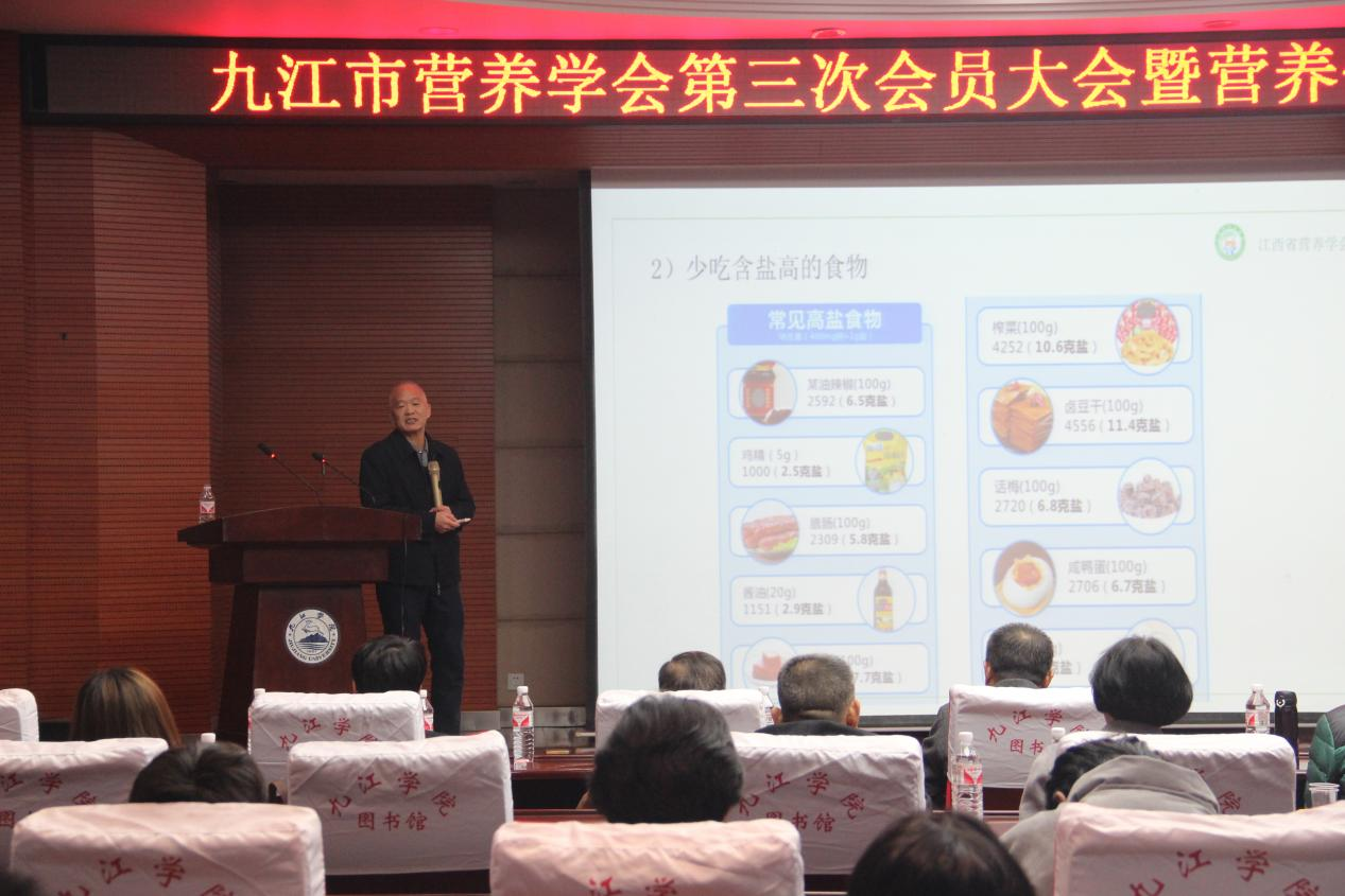 为了提升公众对营养健康知识的认识,12月7日,九江市营养学会第三次会员大会暨营养健康学术报告会在逸夫图书馆一楼报告厅开幕。本次报告会由九江市营养学会主办,九江学院药学与生命科学学院承办。副校长王殿元、九江市科协副主席徐勋平、江西省营养学会理事长邓泽元、药学与生命科学学院负责人、九江市民政局、九江市科协相关干部等参加开幕式。