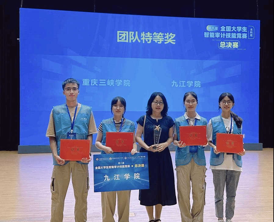 我校管理学院审计学专业陈家鑫、邵玉清、邓晶、虞璐嫣以及财务管理专业的陈铭晖同学在2024年的三大审计专业竞赛全国总决赛中取得了令人瞩目的优异成绩,连续为我校夺得三项特等奖。