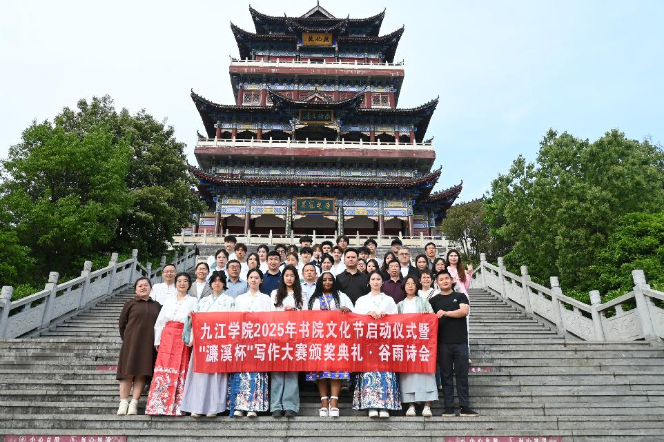 为深入学习贯彻习近平新时代中国特色社会主义思想和党的二十届三中全会精神,传承中华优秀传统文化,进一步激发全校学生书写和讴歌新时代的创作激情,推动九江学院校园文化的繁荣与发展,九江学院举办了2025年书院文化节启动仪式暨“濂溪杯”写作大赛颁奖典礼·谷雨诗会。活动于4月23日在南山公园德化楼盛大举行,由国家语言文字推广基地(九江学院)主办,九江学院党委宣传部、九江学院教务处、九江学院团委、九江学院文学院等单位承办。九江学院师生代表齐聚一堂,传承与弘扬书院文化,感受诗词之美与文学魅力,共同开启这场文化盛宴。