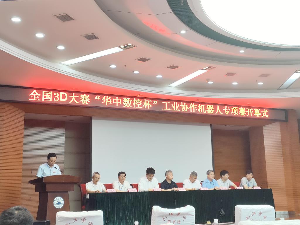 7月2日下午,大赛开幕式在九江学院逸夫图书馆报告厅举行。九江学院副校长鲁卫东、全国3D大赛组委会秘书长刘晓青、专项赛国赛专委会主任华中科技大学王书亭教授、专项赛国赛总裁判长/大赛巡视员太原理工大学李卫国教授、武汉华中数控股份有限公司副总裁蒋荣良、南昌大学李小兵教授,九江学院创新创业学院、机械与智能制造学院负责人以及参赛师生代表近160人参加开幕式。