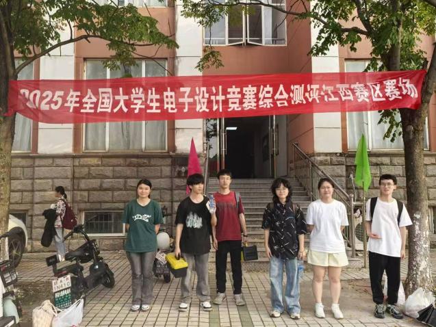 我校电子信息工程学院历来高度重视该项赛事,电子信息工程学院组建了由资深教师组成的指导团队,从赛前选题指导、技术难点预判,到赛中方案优化、问题实时攻关,全程为学生提供专业支持。院长邓长寿、副院长罗东云在竞赛期间到现场看望、鼓励全体参赛学生,在实地了解赛事进度、学生备赛状态及硬件保障情况后,领导对师生们的辛勤付出给予充分肯定。4 天 3 夜的赛程中,参赛学生在指导教师的带领下,围绕作品设计目标分工协作:有的负责电路搭建与硬件调试,有的专注程序编写与功能测试,有的统筹方案优化与报告撰写。面对元器件兼容性不足、程序运行稳定性欠佳等突发问题,师生们通宵达旦排查故障,反复迭代优化设计方案,最终确保 21 组参赛作品顺利完成提交。