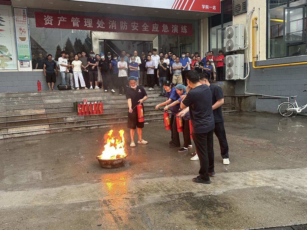同时,资产管理处还组织校园商业服务人员开展消防安全与服务质量双培训,通过灭火实操、逃生演练强化应急处置能力,并建立“部门巡查+师生监督”机制,对餐饮服务、商超运营等重点领域实施动态监管,确保安全防线无死角。
