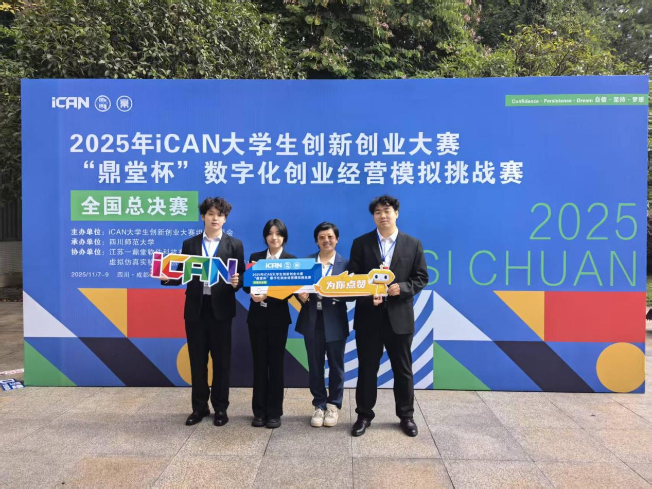2025年11月8日,2025年iCAN 大学生创新创业大赛“鼎堂杯”数字化创业经营模拟挑战赛全国总决赛在四川师范大学圆满落幕。我校经济学院顾艳辉教师指导的参赛团队(队长:王硕辉;成员:邓焱文、刘欣蕾)凭借硬核技术实力与扎实落地成果,从全国379余所高校、2万余名参赛者中脱颖而出,斩获全国一等奖,彰显了我校创新创业教育的丰硕成果与青年学子的创新活力。
